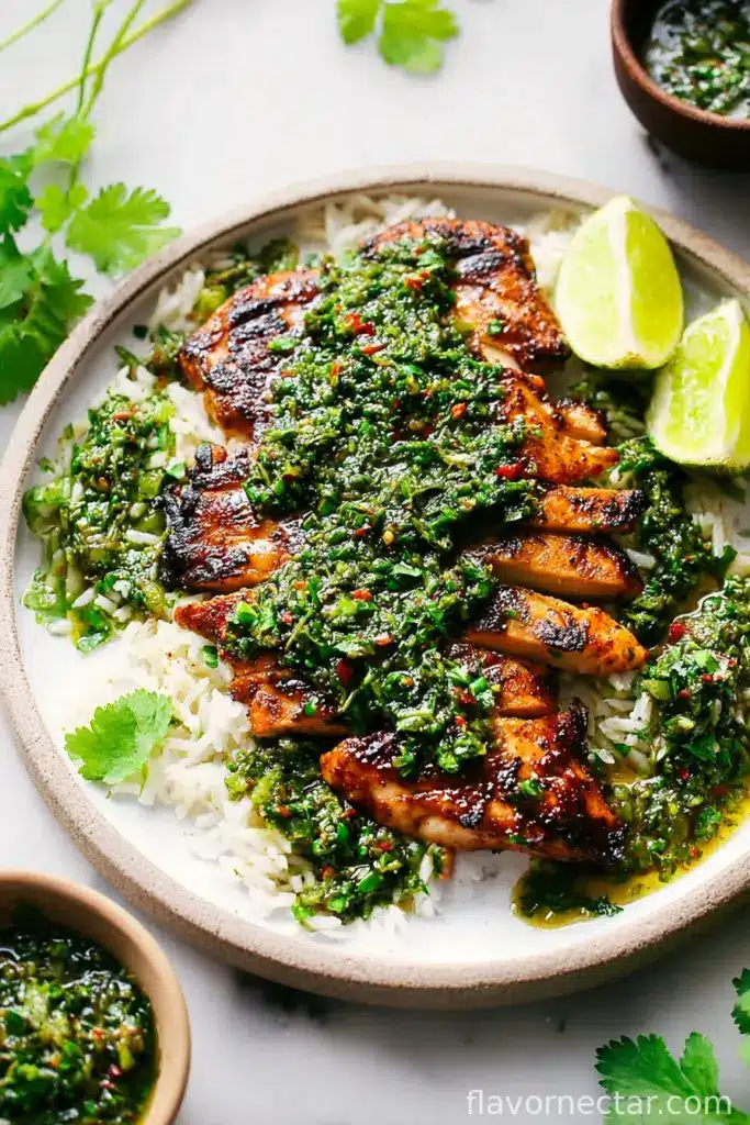 I pull this recipe out whenever I want to convince my family I’ve pulled off some culinary magic (and honestly, they fall for it every time). The sauce? It’s so fresh, almost sharp, with a hit of garlic and herbs that makes everyday chicken feel like it finally got an invitation to the party. My kids fight over who gets the last spoonful of sauce—no joke. If I’m feeling lazy, I’ll use whatever rice I have lying around or even skip it and just load up on chimichurri and chicken. I suppose you could just eat the sauce by the spoonful, but that might be weird… or is it?