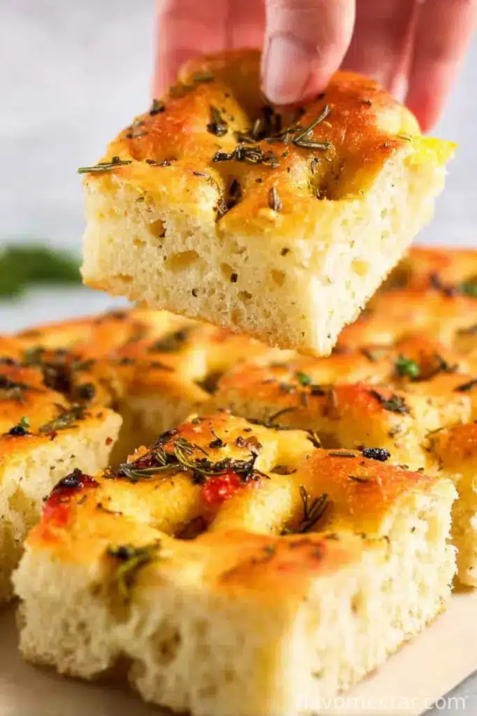 Okay, now I’m hungry. Just thinking about buttery, golden focaccia gets my stomach rumbling. Hope you enjoy making this as much as I love eating it—and if you try something totally wild with it, let me know! (Just… maybe skip the cheddar.)