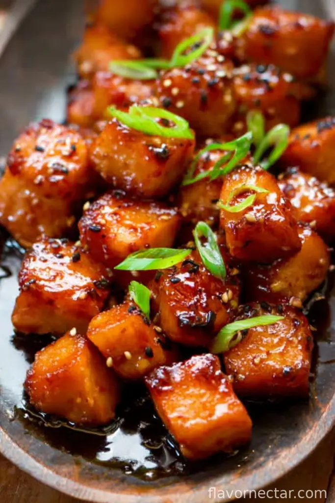 - Cook it up. Heat a splash of oil (I use whatever’s handy—canola, olive, whatever) in a nonstick pan over medium-high. Now, lay the salmon cubes in a single layer. Let them get all golden and caramelized—2 minutes or so on one side, then flip (well, attempt to flip; they roll everywhere!). Cook another minute or two. If you want extra glaze, pour in any leftover marinade but let it bubble for a bit so it coats every piece.