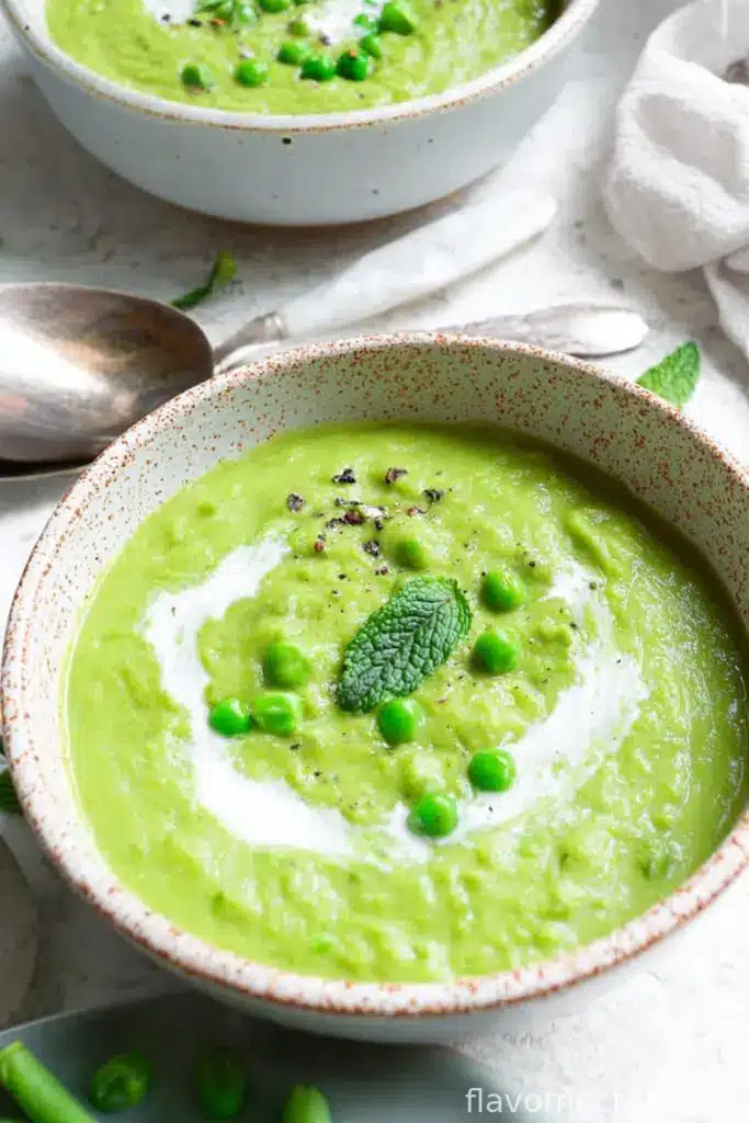 I’ll be honest, Spring Pea Soup With Mint wasn’t something I grew up eating. The first time I made this was after a truly unforgivable week of April rain—my socks were never dry, my cat was annoyed, and I just craved something, well, green. Not, you know, bitter salad green or “Oops, that’s cilantro, not parsley” green. Sweet, oh-it’s-finally-spring green. So out came the peas and mint (the ones growing like wild behind my shed), and this soup found its way firmly into my spring rotation. My first batch was a little more like pea mush than soup—blender exploded, too, but that’s a different story for another recipe.